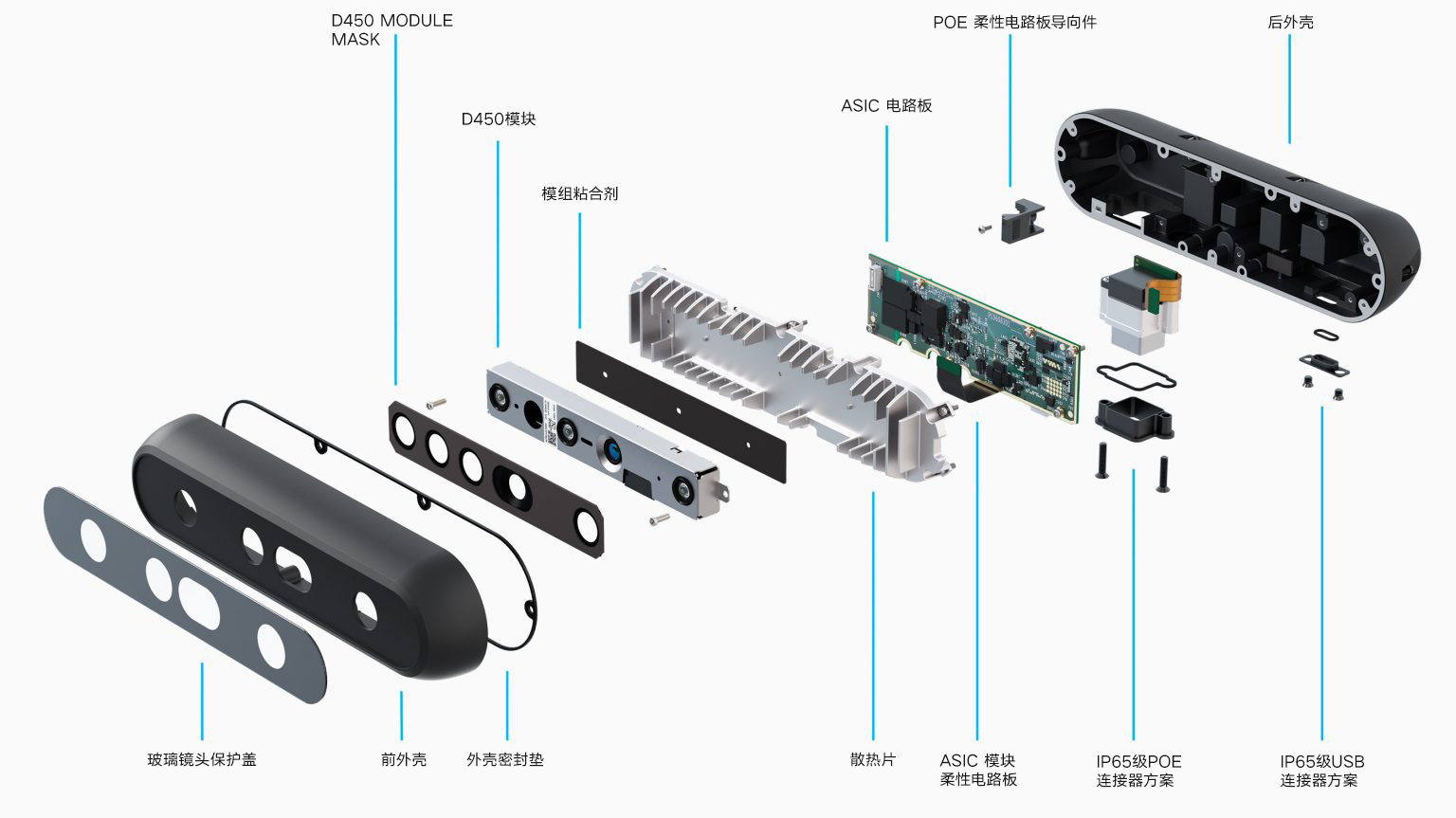 Intel® RealSense™ D555 深度相机内置以太网供电(PoE)芯片接口,进一步丰富了我们的 USB 及 GMSL/FAKRA 产品系列。